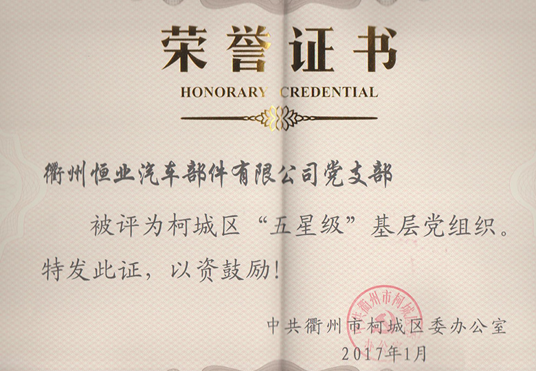 2017年1月榮獲(huò)柯城區“五星級”基層黨組織稱號